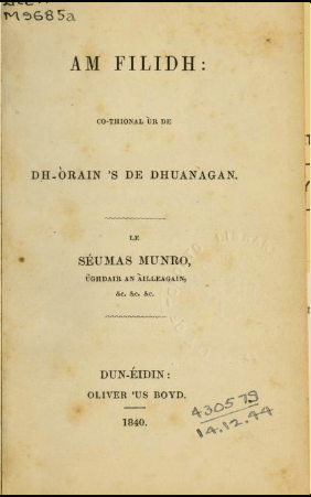So you can see that “my” Seumas Munro also published a Gaelic primer, so it might be the Seumas Munro that A. MacLean Sinclair describes? If anybody has more information on the author of “Am Filidh” do let us know.