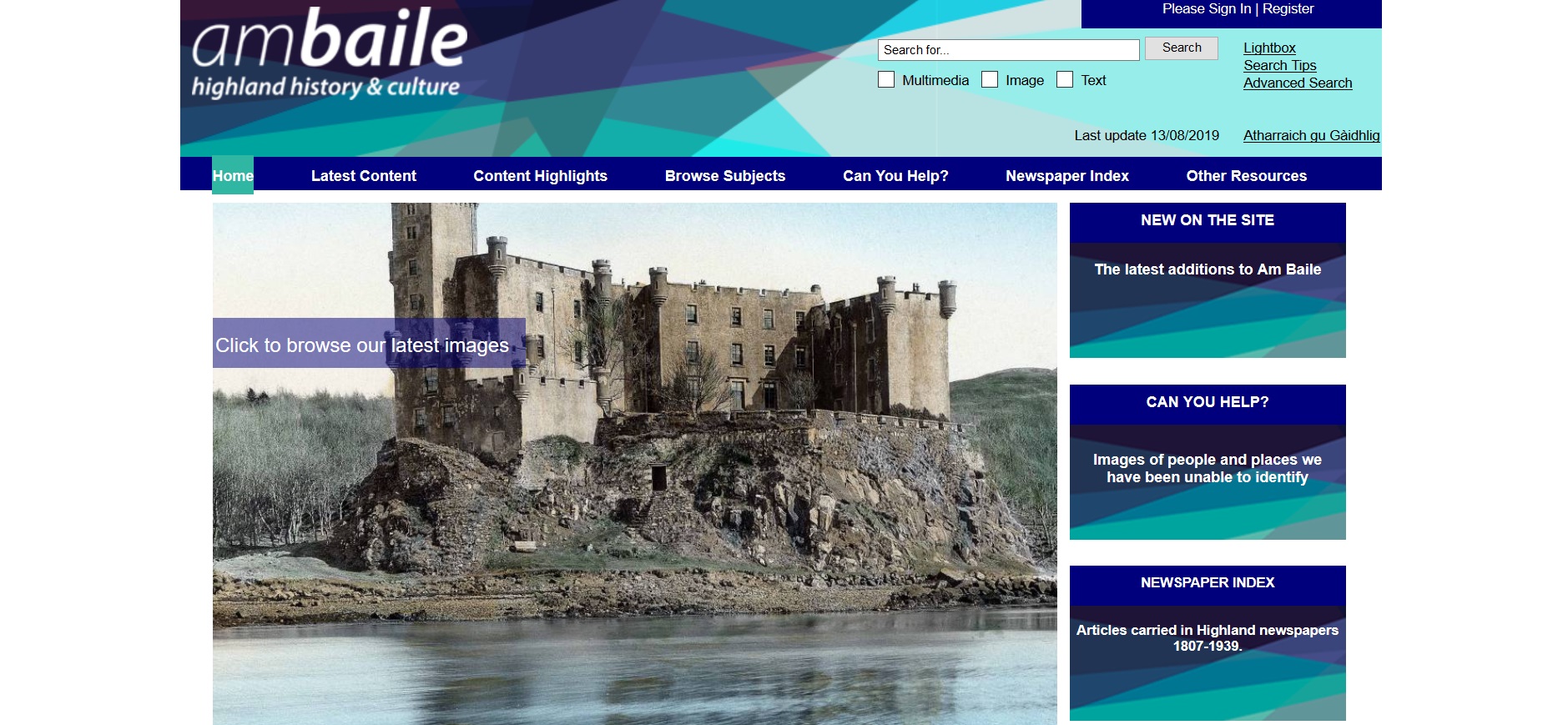 Am Baile’s website is powered by Capture. Capture builds “digital asset management systems” for its clients. Basically, the company creates bespoke websites. Many of their clients are museums, galleries, and heritage institutions. For Am Baile and others, that also includes websites which can handle organizing a large amount of digital objects (photos, historical documents, recordings, etc.).
