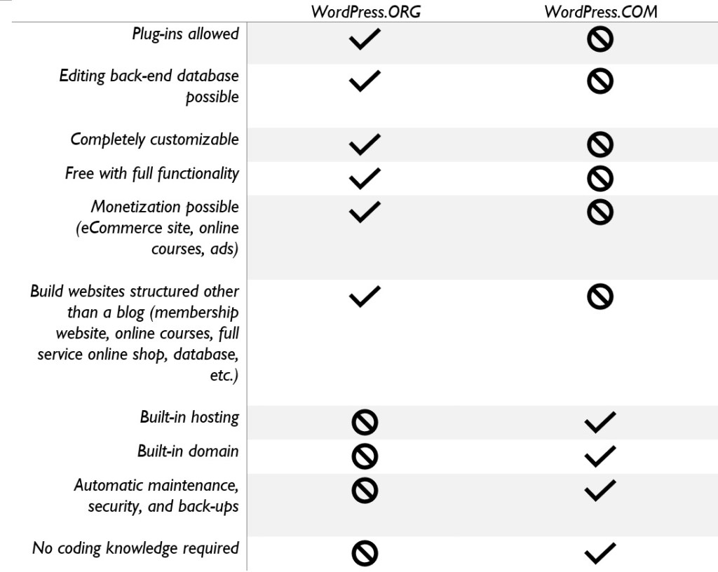 A simple way to explain the differences: the features and functionality you get by default on WordPress.org are only available as premium plans on WordPress.com – but in return, you’re handed the reins of the whole thing with WordPress.org. You have to organize your own domain, your own hosting, your own maintenance. Some people don’t want the reins, for good reason.
